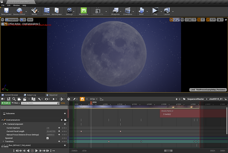 The sequencer used timelines and keyframing to manipulate different aspects of the components within it. Given my previous experience with digital cameras in Photography and Videography, I played around a lot with the focal lengths and aperture of the CineCameraActor within Unreal Engine.